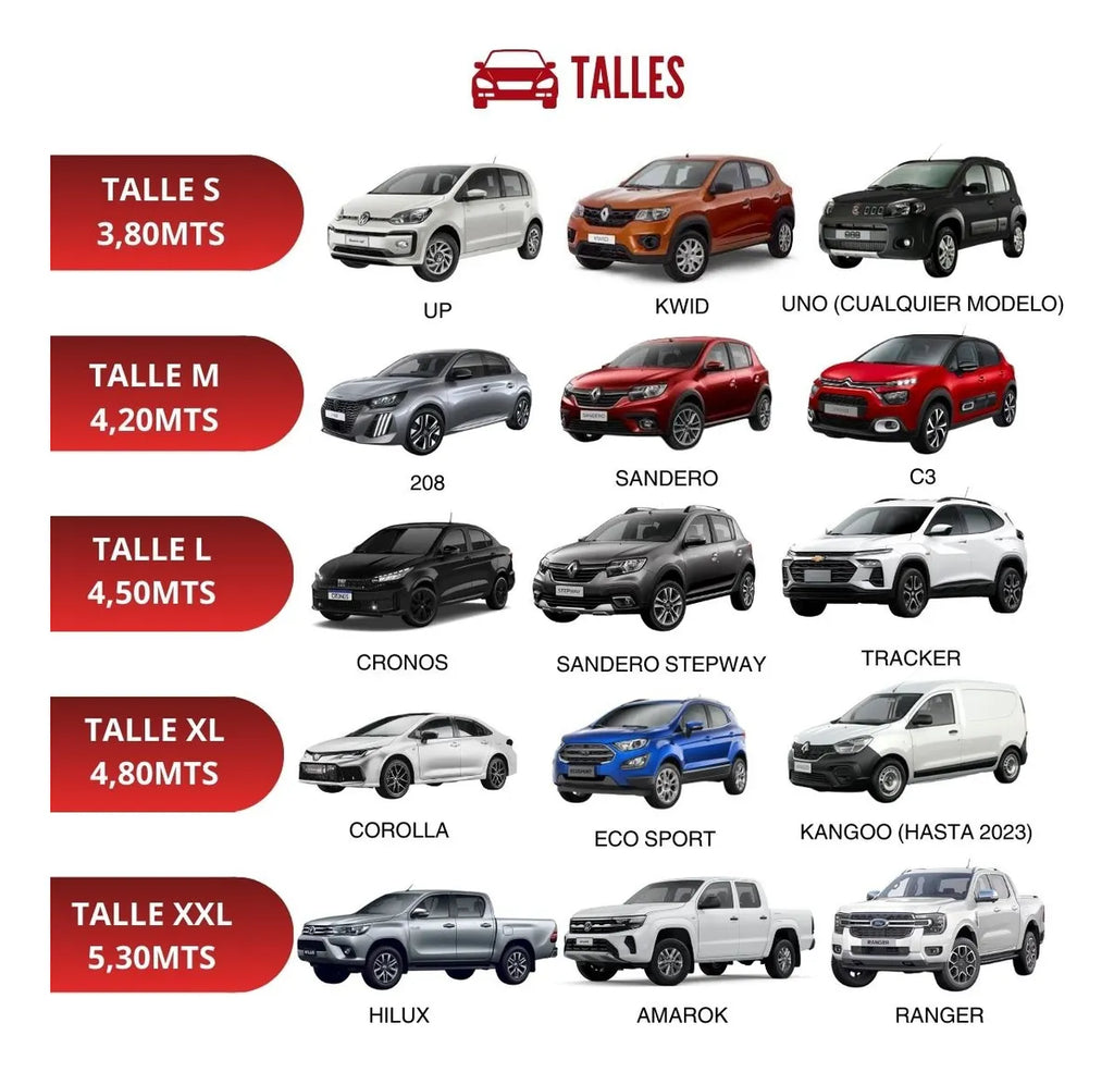 Desde autos compactos hasta camionetas grandes (consultá el talle ideal para tu modelo).