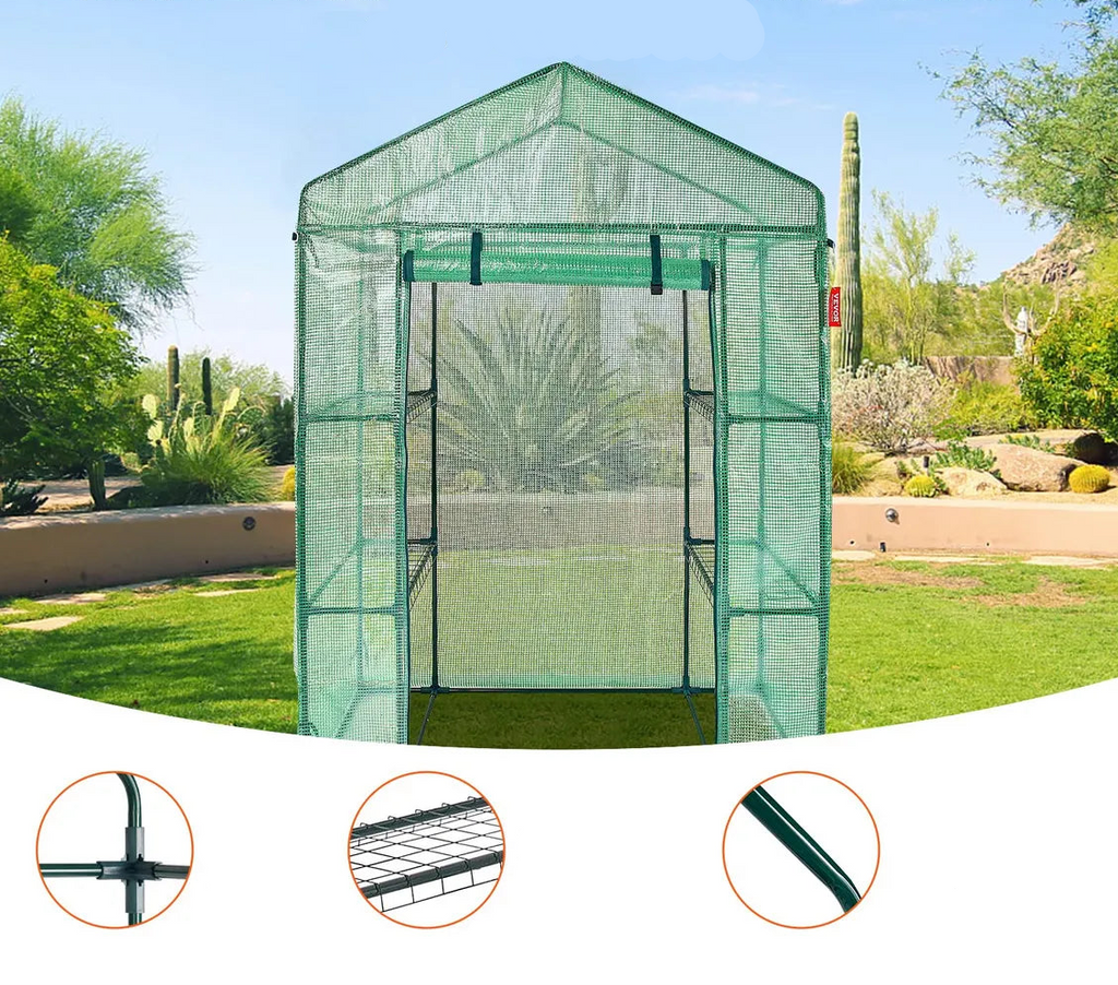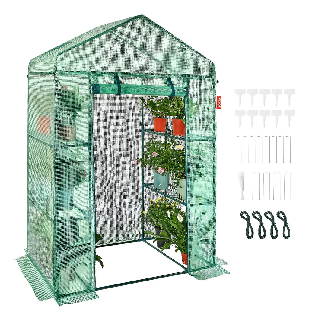 Este invernadero portátil es perfecto para quienes buscan crear un ambiente protegido y estable para sus plantas. Su estructura reforzada y cubierta transparente permiten mantener una temperatura más controlada y proteger tus cultivos del viento, lluvia y heladas.