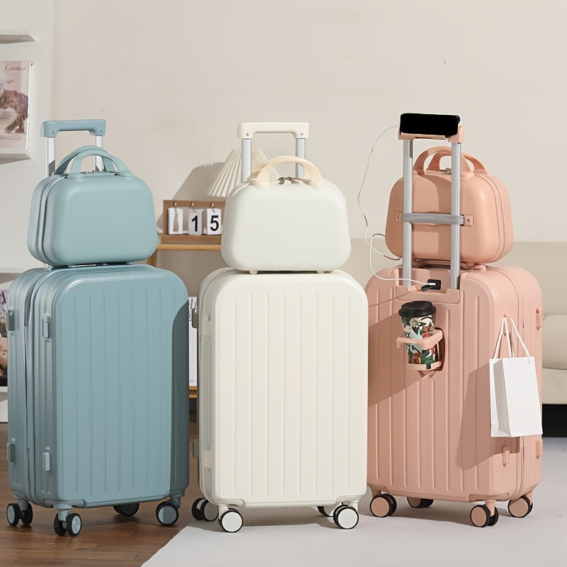 juego de equipaje   de 2 piezas de 20 pulgadas, maleta de carcasa   con ruedas giratorias,   usb, asa de aluminio + aleación de hierro, cerra  de combinación, cierre de cremallera, material abs + pc, para   mujeres - colores surtidos 2
