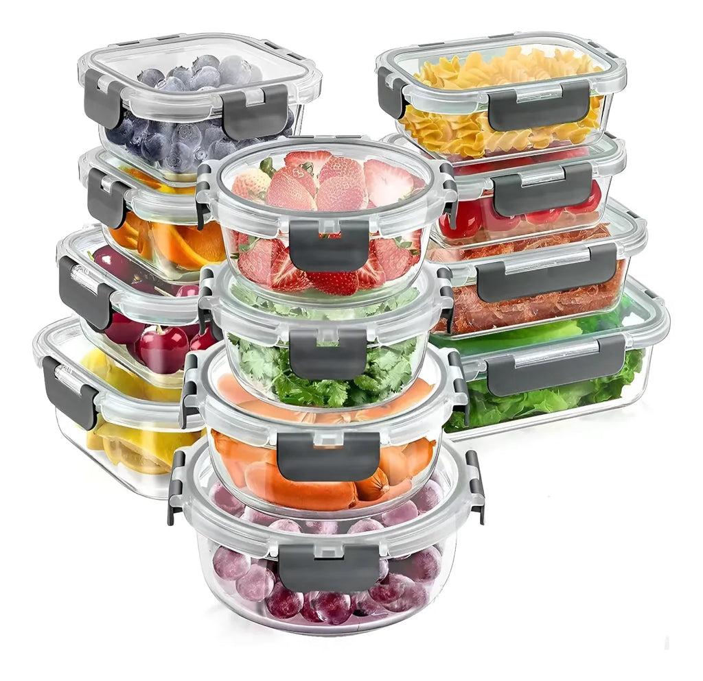 Set de 12 recipientes herméticos de vidrio – versátiles para cocina, microondas, freezer y lavavajillas