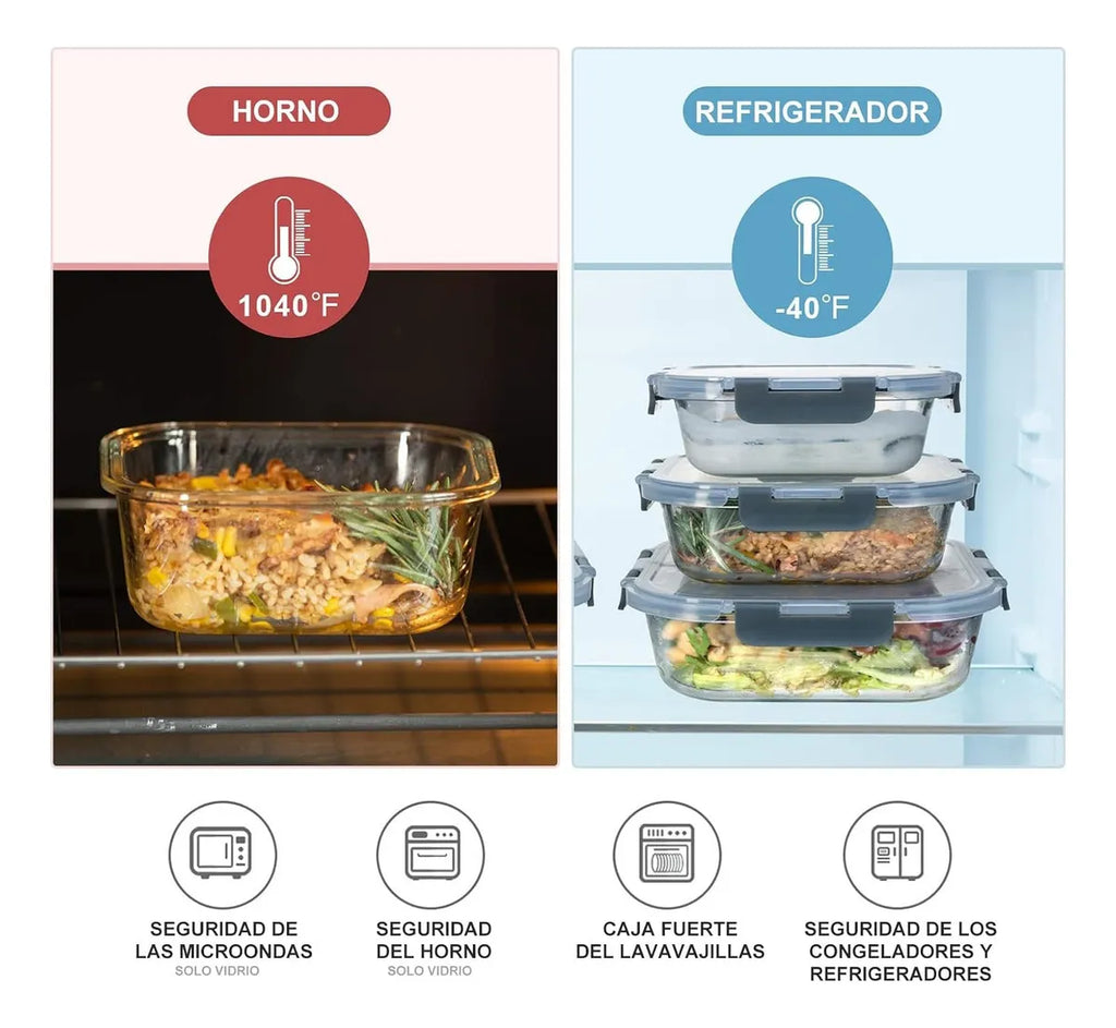 Este set está compuesto por recipientes de vidrio con tapa hermética. Sirve para conservar alimentos frescos, guardar sobras, almacenar ingredientes secos (como cereales, arroz, pastas), preparar comidas con anticipación, utilizar en microondas, freezer o horno (según las recomendaciones del fabricante), y mantener todo organizado en la cocina. Es ideal para hogares, familias, estudiantes o quienes buscan eficiencia y orden en el día a día.