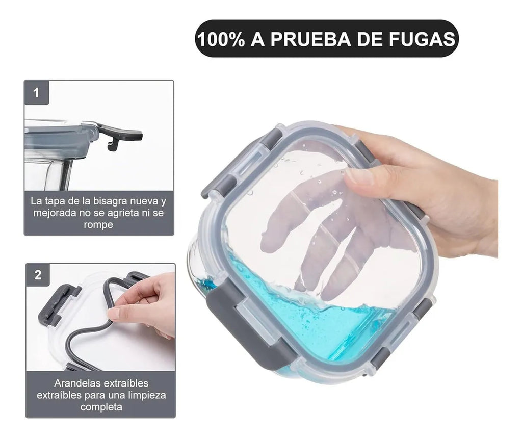 Diseño funcional — tapas seguras, vidrio transparente para ver el contenido, bordes resistentes.