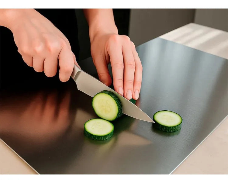 La nueva Tabla de Acero Inoxidable te brinda la libertad de cocinar de manera higiénica y segura.